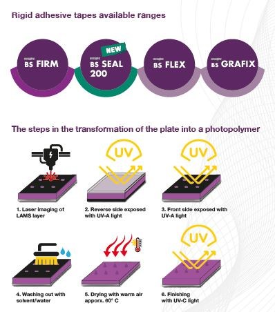 It is the most advanced solution in the process of laminating the plate to thepolyester support for printing in the corrugated cardboard sector.