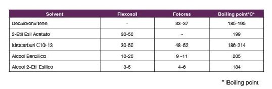 Below are the characteristics of two solvents often used in the washing phases with which the photopolymers remain in contact for about 20 minutes.