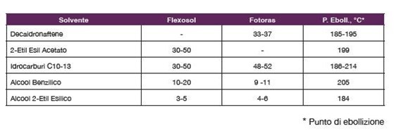 Qui di seguito sono riportate le caratteristiche di due solventi spesso utilizzati nelle fasi di lavaggio con cui i fotopolimeri restano a contatto per circa 20 minuti.